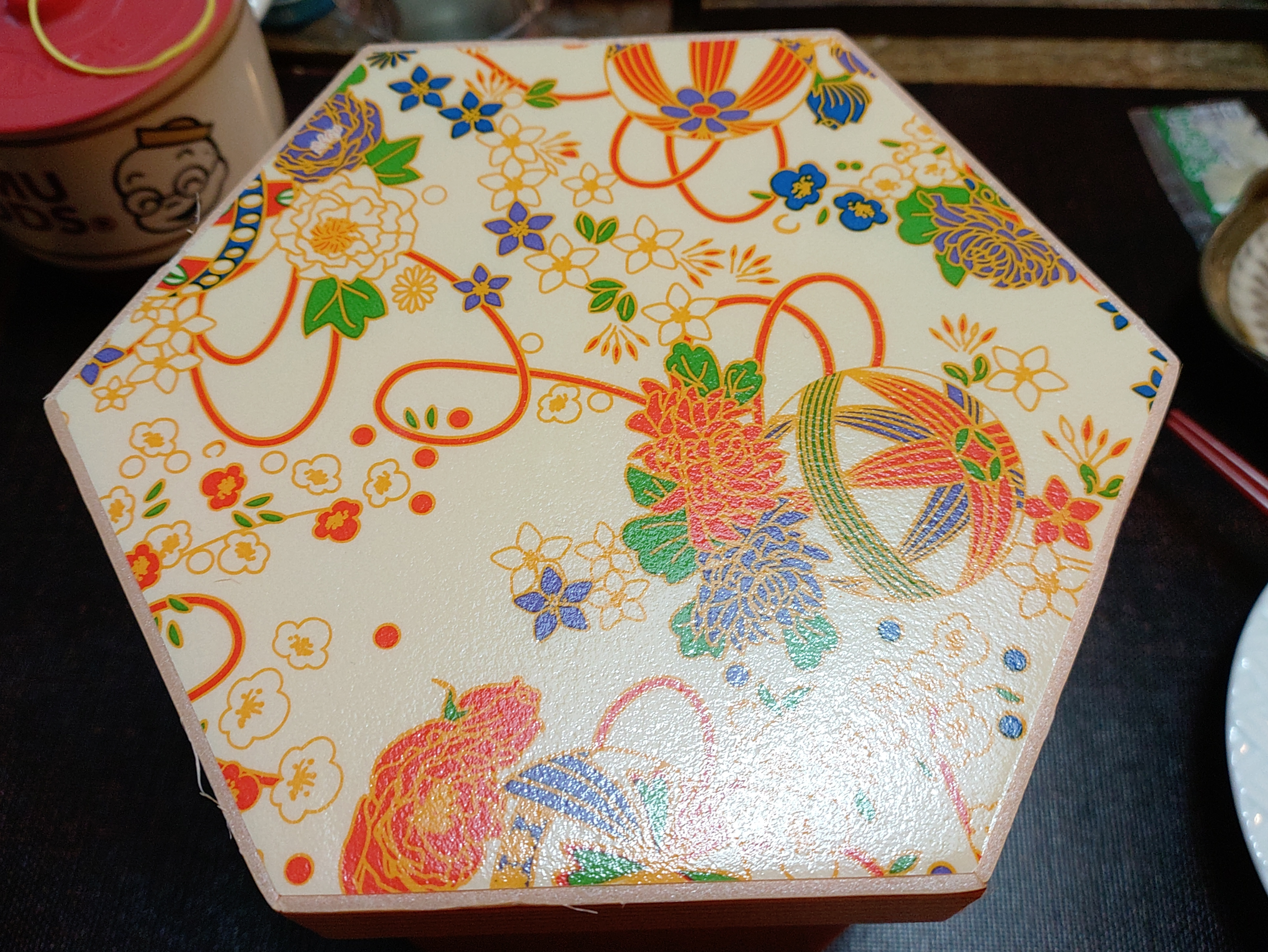 投稿を表示このお重の柄は、私の小学生の頃のお裁縫箱の柄と同じで、なにやらノスタルジック☺