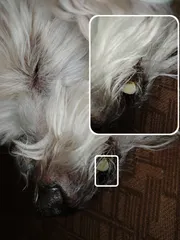 NEW 最後の一本 繁殖引退犬の推定5歳の保護犬を引き取って5年になります酷使されたのか当時4本しか残っていなかった歯が気付けば1本に白内障が進み目もほぼ見えていませんかみさんの傍らでは安心して眠ります余生を安らかに過ごしていると思います