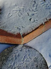足跡…!? 神棚にお上げしたお米を撒くと、誰かが食べに来たようですね(笑)五色山。氷結の森
