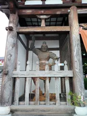 四天王像 神社の神社の隣にある寺院の門を囲むように立っている四天王像です。外側を向いている方は色褪せているが、内側を向いている方は色がそのままだ。