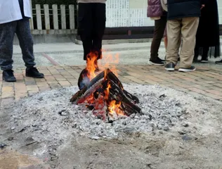 謹賀新年、明けましておめでとうございます。 あらゆる厄災を炎で浄める様に、地元の神社で参拝の後で焚き火?を撮影した。