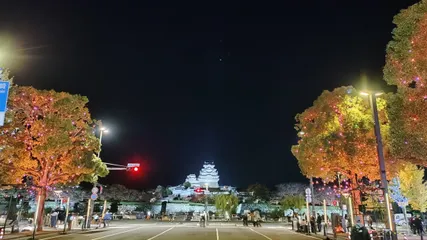 NEW 世界遺産ライトアップ。😁 姫路城のライトアップイベントをやっていて、メインに大手前通りを歩行者天国にしている関係で最悪で〜す。😭😱😭表示にでている処以外も東西南北どちらへも動けませ〜ん。😭😱😭別の目的で来てるので😭😭😭で〜す。😨😭😨 姫路城と駅前のイルミネーションは”ナナヨンさん”におまかせしま〜す。🙇☺️🙇(G0