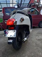 スクーターリニューアル中 今日は帰ったらスクーターが在宅していたのでまるでマフラー交換パワーアップなんて微々たる物ですがノーマルの半分以下の重さなのでその分いいはずっすwカウルも新品でピカピカになったのでステッカーチューンとリアサスを変えたいなーとやりたい事一杯ですねwカッチョええステッカー探さなきゃですあとタイヤも交換しな