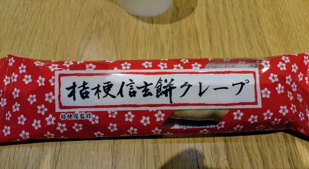信玄餅クレープ♥️ スキー帰りに北関東道の太田強戸PAで発見し、購入しました。冷蔵なので少しとけてから食べるとちょうどいい感じでした。中に信玄餅が長細い形で入ってました。初めて食べましたが、黒蜜との相性も良く美味でした♥️