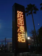 積雪に備え、愛車を整備 凍結の電光掲示。我が街も雪が降る寒さになってきました。積雪に備え、愛車のランドフリーダーを整備です。キャタッピの劣化は無いようです。よーし、新雪爆走の準備万端。
