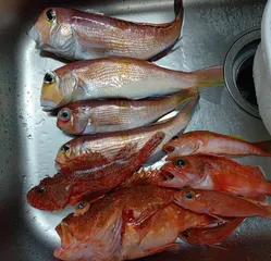 アゲアゲ 今日はアマダイ狙いで頑張りましたアマダイ釣りはゲストが多くて楽しい釣りです!アマダイヒメコダイオニカサゴユメカサゴウッカリカサゴどれも美味しい魚なのでしばらく楽しめそうです!帰りのスーパーで芝海老やすかったので買っちゃいますた