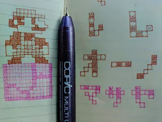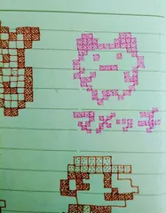 マリオブロックおえかき マリオブロックおえかき。たまごっちのキャラクター(まめっち)を描いてみました。先日描いたマリオよりも、少し小さめを意識して描いてみました。小さいおえかきのリハビリ作業としてとても良い感じです。何だかピントが合いやすくなってきた気がします笑( ´◡‿ゝ◡`)