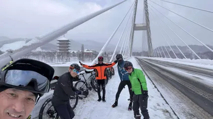 スノーライドシーズン開幕! 昨日は坂バカH氏の企画で今シーズン初のスノーライド開幕戦に参加して来ました。芦別スターライトホテルからカナディアンワールド周辺の道を約30km走行。やはりH氏の罠で、事前に発信されていたコースマップをサイコンにダウンロードしていたのに、コース外ばかり走る??しかも坂ばっかり!!またやりやがったな〜!