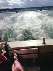 宝くじ当選祈願② 佐賀県唐津「高島」に行って来ました🥹 🏯唐津城のすぐ近くの宝当桟橋から定期船(乗船定員40人程)に乗って⛩️宝当神社がある高島に行きました🙂↕️ 船はかなり年季が入っていて音と振動がスリル満点でした😭乗船している人のほとんどが⛩️宝当神社が目的のようでした😊今回は愛妻と愛犬と一
