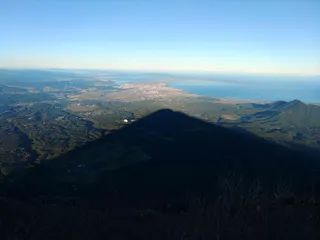 中国地方登山 大山下山(鳥取)11/9 大山の影が手前まできて美保湾と米子が綺麗に見えます。