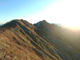 中国地方登山 大山山頂風景(鳥取)11/9 ご来光は見れませんでした。剣ヶ峰、天狗ヶ峰、槍ヶ峰です。