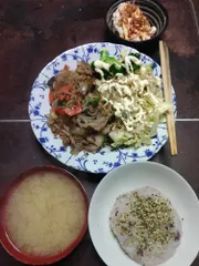 業スーの冷凍生姜焼きにプラス~ 晩飯~