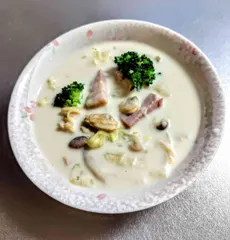 クラムチャウダー 今日の晩御飯です!アサリは日本酒につけてたものを使い柔らかくなってます 彩りにブロッコリーを載せてます!って家内が作ったんですけどね。 今日は、最高気温−1℃で風もあり、冷えた体が温まりました。寒波早く終わらないかなぁ〜。
