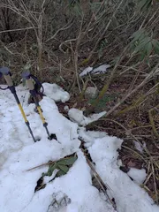今日は次第に雨との予報でしたが、しばらく所用で行けずにストレスたまってましたので、、レインウェア着用してでも行くつもりでした。 自宅からほど近い、黒沢大台山(833m)という所ですがYAMA〇Pを見てて知りました。雪が解けていればかなり上まで車で行けそうでしたが、途中で断念して車を置けそうな所まで
