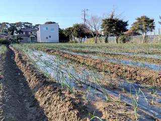 ①白子の新玉葱 大きくなれ〜 新玉葱は苗を11月に植えて5月に収穫になります!!ほぼ半年間、寒い冬、強風を乗り越えてたくましく育ちます。