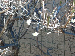 最強・最長寒波と言われる中、庭の梅くんが咲きました😻今日は特に風もなく、日差し暖かなので、大きく開いています😸白い咲きかけもちらほら😸春も近いのかしらん😻