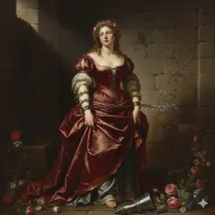 ルーベンス風に 指示次第ですね教養と語彙力が問われます💦 ベースは先のものと同じで、王国転覆を企む一味に囚われた、気高くも悲劇的な薔薇の王女と、彼女の解放を助ける騎士を暗示させるモチーフを加えてイメージさせました