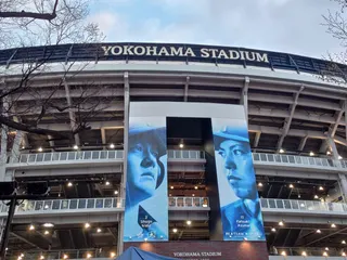 今日からプロ野球開幕です!✌️😆⚾2026開幕戦の観戦に🏟️横浜スタジアムに来ています! Go!横浜DeNAベイスターズ🐹 \ I⭐YOKOHAMA /入場ゲート3塁側ベイスターズ応援席(ワイド撮影) 《おまけ》📱5G蔵出し画像 「⭐スターナイト」ドロ