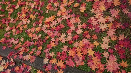 2025-19 道路もキャンパス 上を見上げると綺麗でしたが、下を見ると更に絵のような鮮やかさに思わずパチリ(^^)v雨に濡れてより一層色が引き立っているようでした\(^o^)/