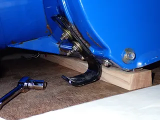 気になっていた除雪機のソリの高さを調整します。除雪する場所はコンクリ敷ですが凸凹がひどいので、オーガ( 回転刃)に引っ掛けないよう、25mm上げることにしました。スクレーパを角材に乗せるソリを引出して調整ソリのベースが腐食しており、前のオーナーが溶接で修理していますがヤバい状態でした。今シーズンもっ