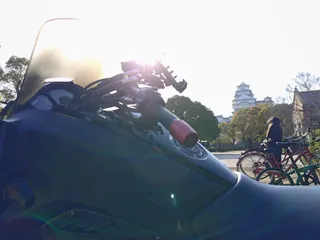NEW 🏍️相棒🏍️と世界遺産。☺️ 姫路城へ桜を見に行った帰りに『パシャリ』。☺️太陽が眩し〜〜い。🫣