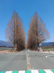 メタセコイヤ_5Gと 来週にはG7に更新予定にて最後のドライブに5Gを連れて行きました。以前、葉が青い時期に行ったメタセコイヤ並木の冬ヴァージョンを見にいきまし!本当は雪景色の時期に行きたかったですが、ノーマルタイヤの軟弱者にて断念です。皆さんのG7への更新記事を見てるとワクワクしてきます(^_^)v因みに、メタセコイヤ