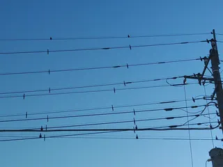 鳥対策 ムクドリの群れが電線に止まる為、電力会社に対策してもらいました。