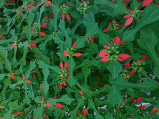 葉っぱが赤くなっており、レンズによるとポインセチアの仲間らしいです。