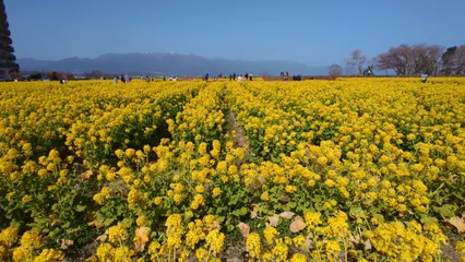 春の兆し 人気の初春の風景に、たくさんの観光者が訪れていました。