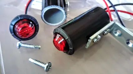 工作中 除雪機にサイドマーカーを付けようと工作しています。そのうちストロボ発光させるかも。
