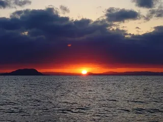 播磨灘への日の入 朝から夕方迄日差しは有りましたが気温はやっと二桁の10℃位で肌寒い1日でしたよ~😅🔆