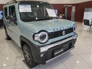o(^o^)oハスラータフワイルドです。オフブルーメタリック&ブラックの2トーンです。バンパーからタイヤハウスのフェンダーーが黒くつながりカッコイイです。ルーフキャリアもついていますね。