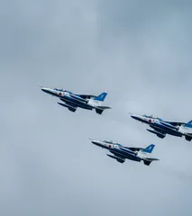 3機が飛び立った後スモークを吹いたなかなか次が飛ばない残りの3機が動き出して飛ぶと思いきや、先ほどの3機が帰ってきた 終わったなぁ 今回のブルーインパルスパイロットのサインが展示されてました