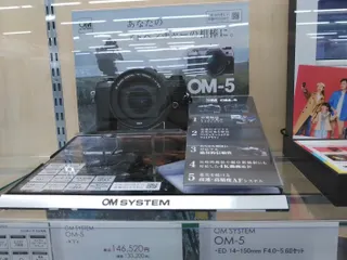 【OM-SYSTEM】OM-5【ミラーレス一眼】 (^-^)はじめてOM-5の実機をみつけました!ガラスケースに入っていて触れませんが予想よりコンパクト。ボディー単体だと税込み14万6520円。納期はなんと今は3週間だそうです。(マジで!?)これが欲しい本命。M.ZUIKOとM.ZUIKO PROのレンズの違いは何かと店員さんに訊いたらレンズの明る