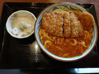 今日の昼食 丸亀製麺の期間限定牛カツトマ玉カレーうどん(大)牛カツはオーダー後に揚げるのでサクサクのアツアツで柔らかい。トマトが入ったカレーで酸味強めでいつものカレーうどんよりちょい辛め。クセになりますw