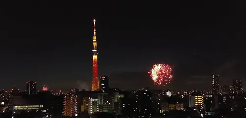 東京では七月になるとスカイツリーと隅田川花火が見られますよ…🎇🎇🧨🧨🧨