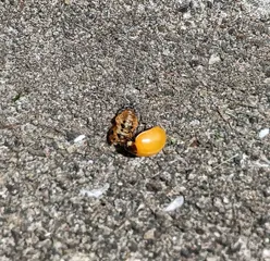 朝の散歩で初めて見た🧐黄金色に輝くテントウムシ🐞横の蛹より羽化したところの様ですね🤗
