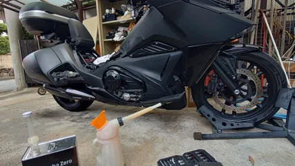 本格的に熱くなる前に。🥵 少し前から“DCT“の“シフトタイミングのズレ“と“シフトショック“が出てたので、本格的に熱くなる前にメンテナンス実施で〜す。☺️ まずは作業準備に約15分。こんなもんかな。 アレッ、OILフィルター忘れてる。🤣次に外装外し作