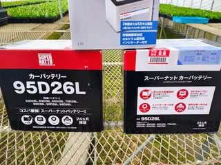 バッテリー交換🔋💥😀💦 TORQUEの様にサクサク出来ません💥😀💦ムッチャ重いです‼️しかも下に潜らないと出来ない&搭載位置が絶妙に工具が回せない🥲💧4年頑張ってくれました😀💥フルゲートなんでバッテリー消費が凄いです‼️腰が痛い💥😱😱比較😀80Dから95Dへ少しレベルアップ?とりあえず再充電しておく⚡️意外と入る大きさは同