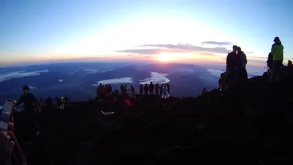 あけましておめでとうございます本年もよろしくお願いします。_(_ _)_写真は昨年の7月26日、富士山頂上からのご来光それと富士山頂上浅間大社奥宮様です早朝3時にトルクをガラスにピッタリつけて撮りました。 (^-^) さあっ、今年も登るぞ!!
