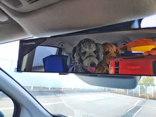 ミラー越しの圧が強い🫣 駐車場に着いてからの写真ですが、毎回行きはこんな感じで後方視界は絶望的です😱💥 🚙💨🐩🐾🚶🚶♀️ そんなこんなで鶴見緑地です 少し右の所で大砲レンズの軍団が、向こう岸を狙っていました⁉