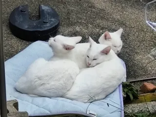 白、白、白😺😺😺 珍しく白い3匹が固まって寝てました😀🍺😺✨