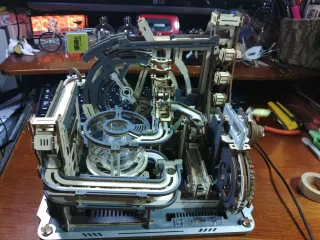 永久機関になりませんでした。 休みが終わってしまった。気が付いたら9時間ほど過ぎていました、もう少し早くできないといかんねぇ。 ワックス塗りが上手くいってないようで、ちょっと動きが重い感じがします。時々ジャムるし、連続して2分間動かないですね。後、撮影した場所が水平じゃないので、一部のギミックが作動しにくいみたい。&n