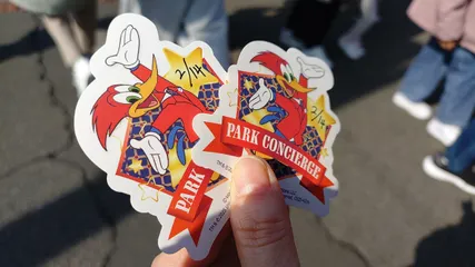 ◯SJで赤いジャケットのパークコンシェルジュさん見つけましたよ~👍 記念にステッカーもらった~(笑)🎶😊