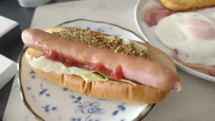 地元では有名なドッグサンドやさんお野菜系 お惣菜系 スイーツ系の3種類のドッグサンドが数十種類スイーツ系はあんこや白玉団子を使った和菓子のようなのもあります今回はランチセットドッグサンドは日替わりメニュー1択になりますがスープ サラダ ポテト ドリンクが付いてお値打ちです