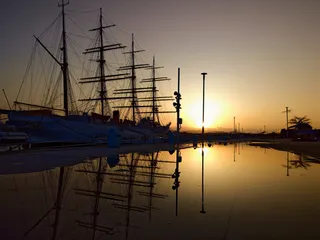 海王丸パークにて夕焼けリフレクションを📸!