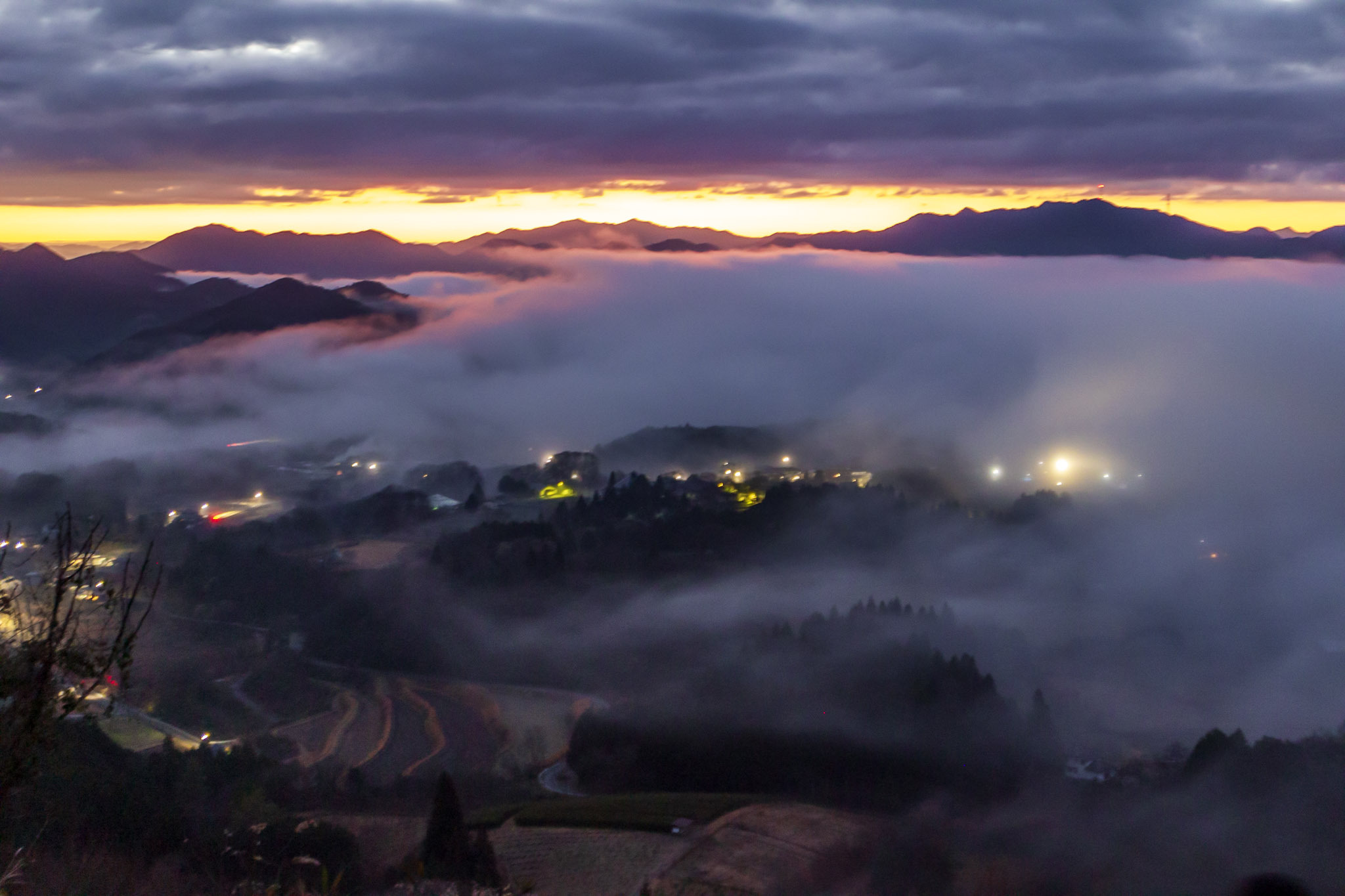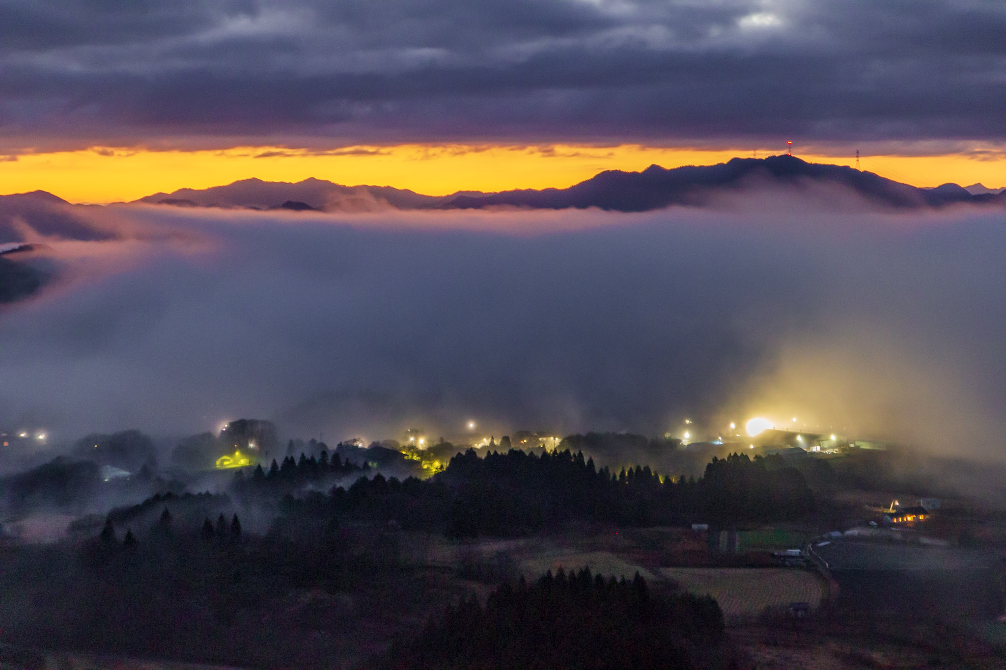 福知山市夜久野町のオーロラ雲海。