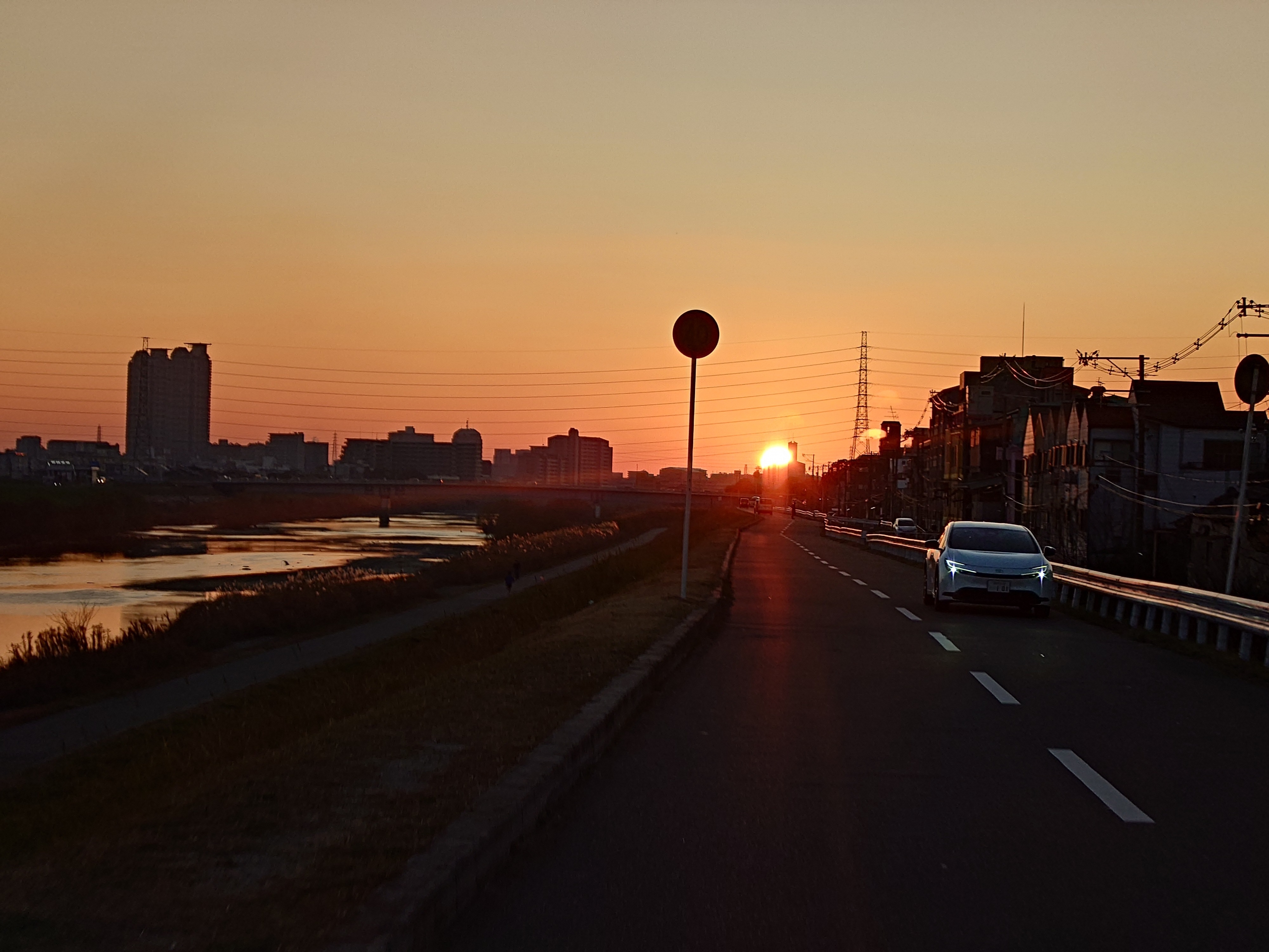 夕日と車