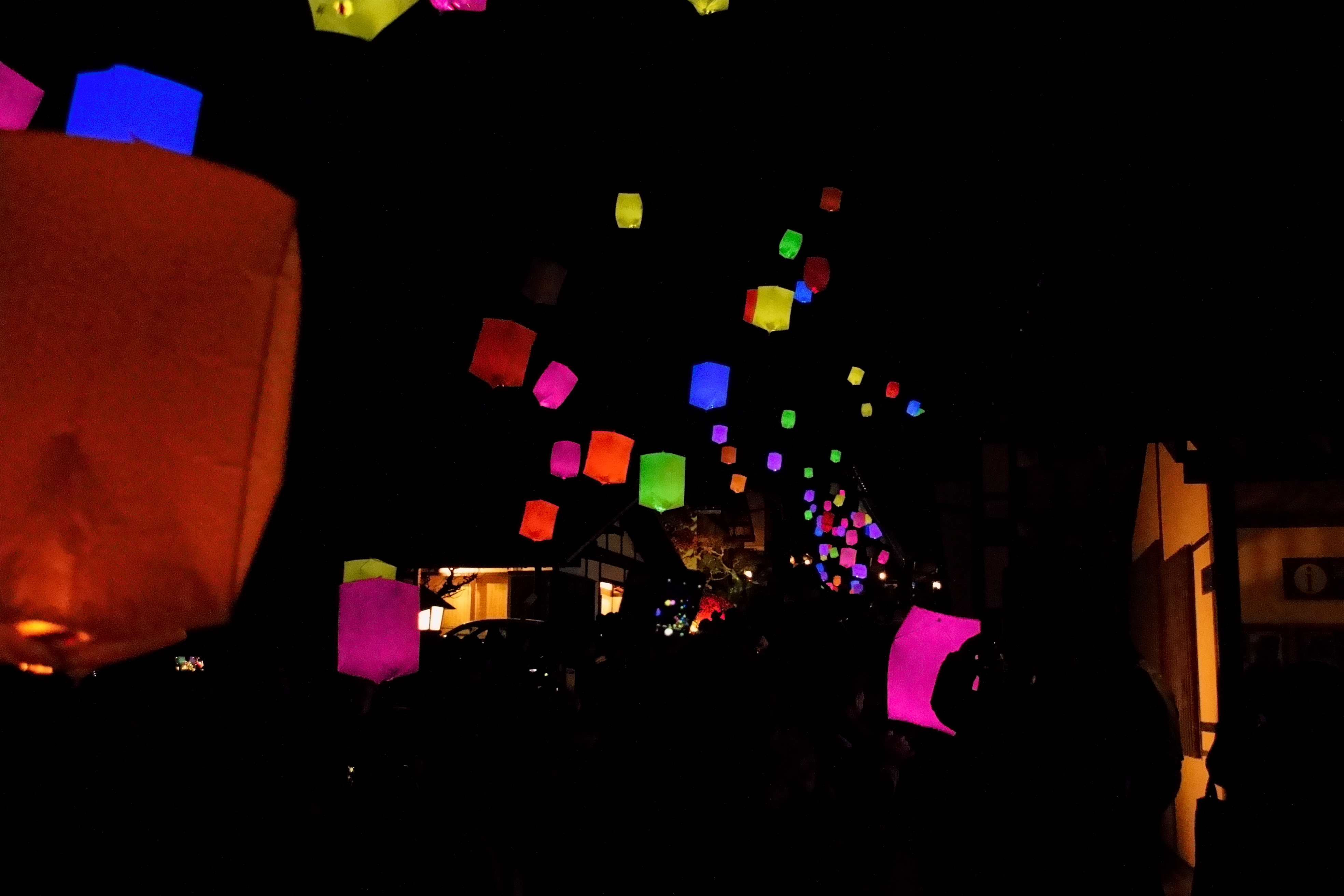 馬籠の夜に咲くスカイランタン